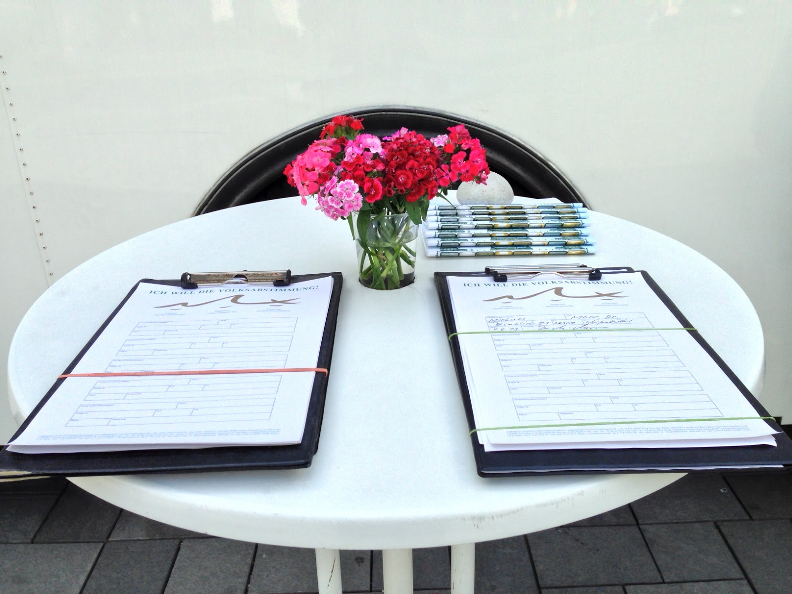 Viele Gespräche und die Möglichkeit für die Einführung bundesweiter Volksabstimmungen zu unterschreiben.